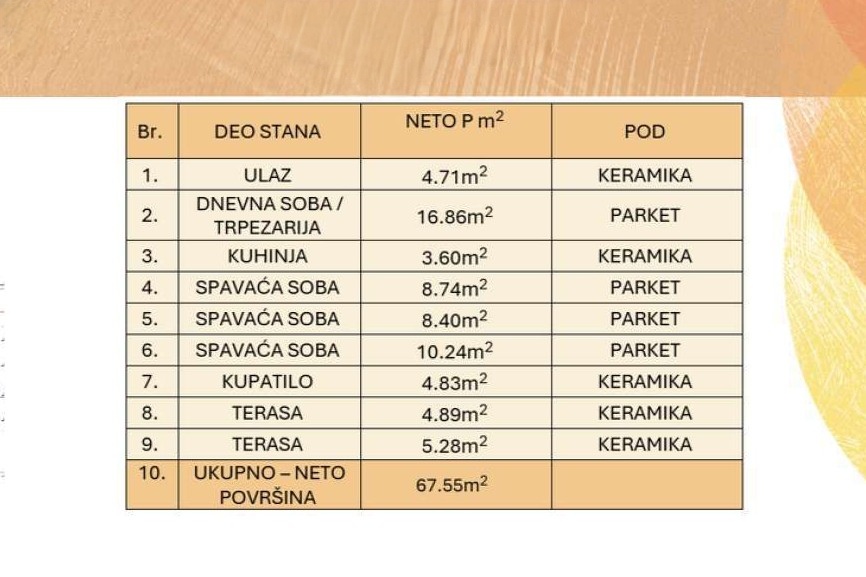 Predstavljamo vam četvorosobne stanove u izgradnji, površine 67,55 m², koji se nalaze u prvom, drugom i trećem zgrade koja se nalazi na odličnoj lokaciji.