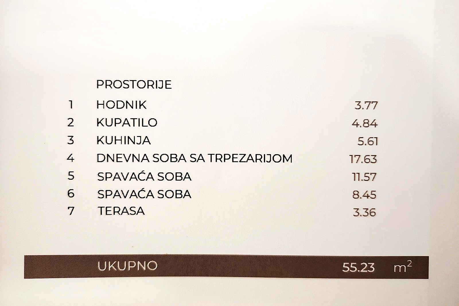 Predstavljamo vam dvoipsoban stan u izgradnji, površine 55,23 m², koji se nalazi na prvom spratu stambeno-poslovne zgrade vrhunskogog kvaliteta.