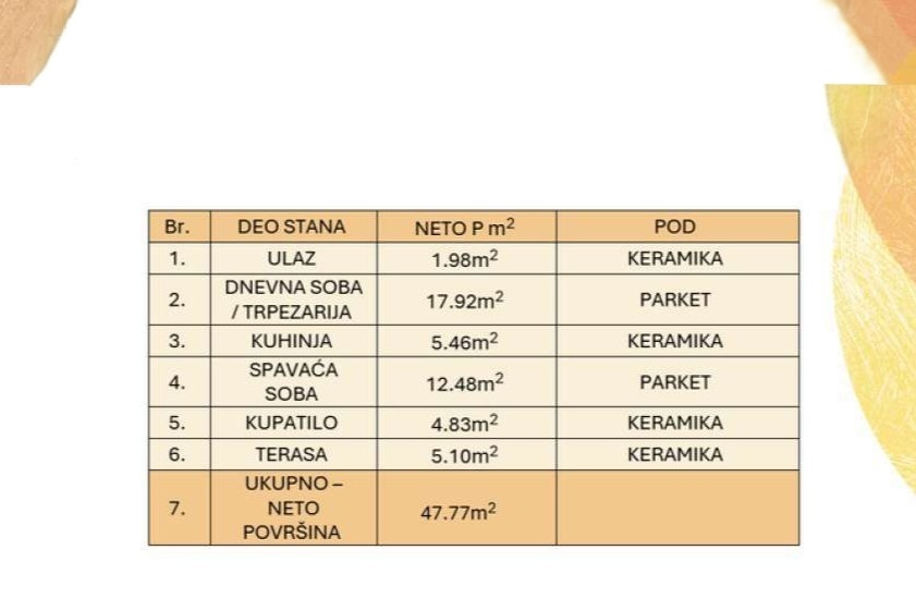 Predstavljamo vam dvosobne stanove u izgradnji, površine 47,77 m², koji se nalaze na prvom, drugom i trećem spratu zgrade koja se nalazi na odličnoj lokaciji.