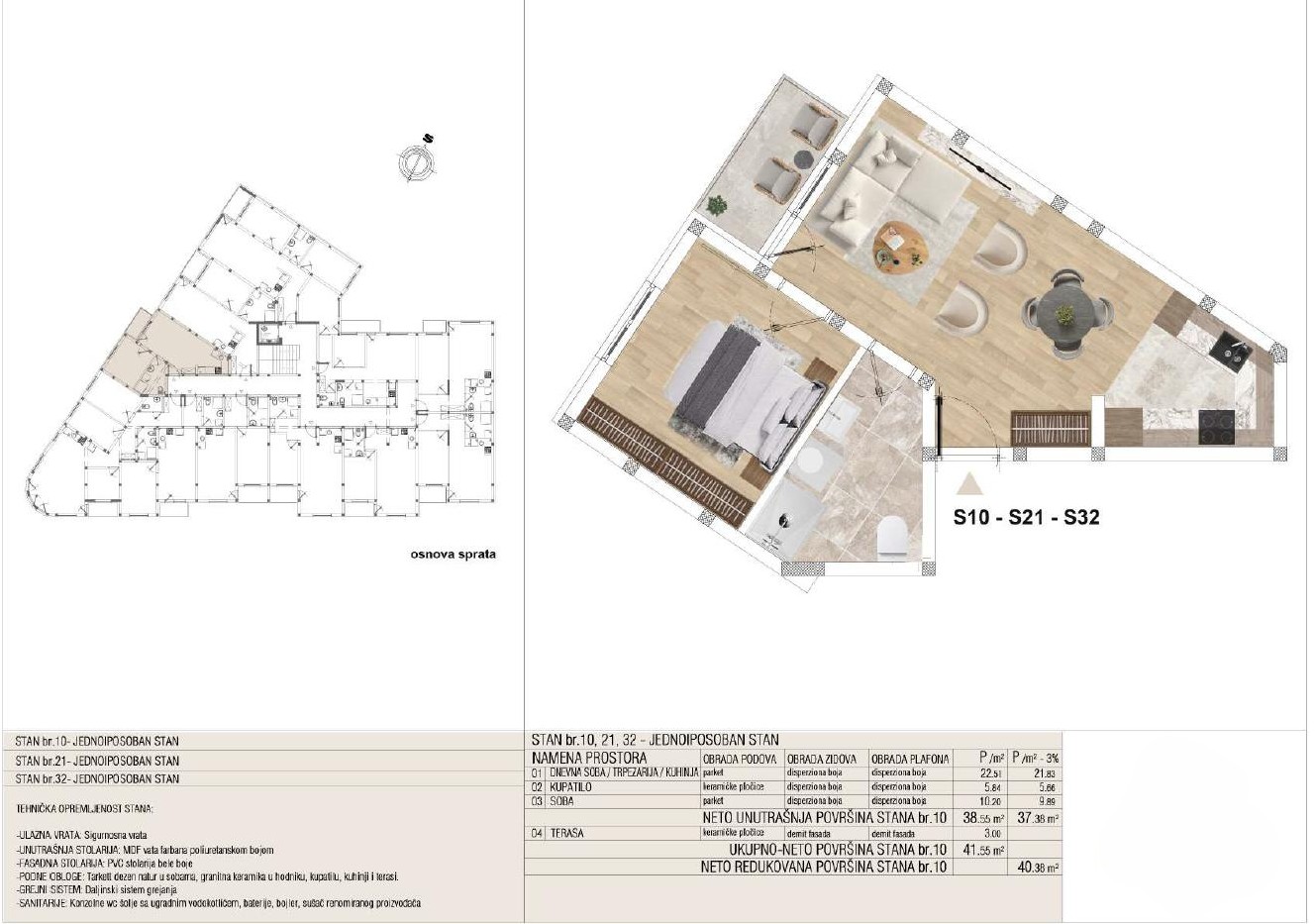 U ponudi su kvalitetni jednoiposobni stanovi u izgradnji, površine 40,38m², koji se nalaze na I,II i III spratu stambene zgrade sa liftom. Odlična prilika za porodični život ili sigurnu investiciju.