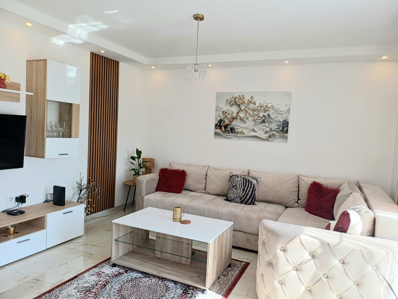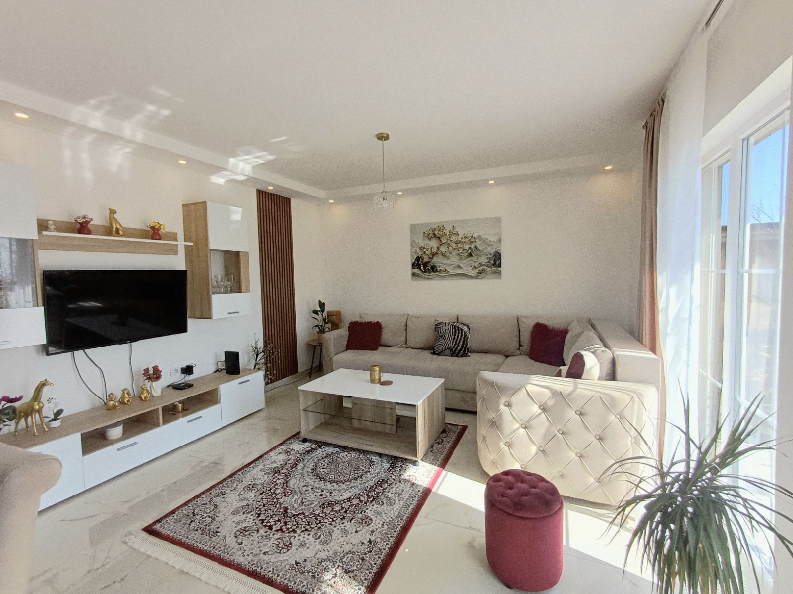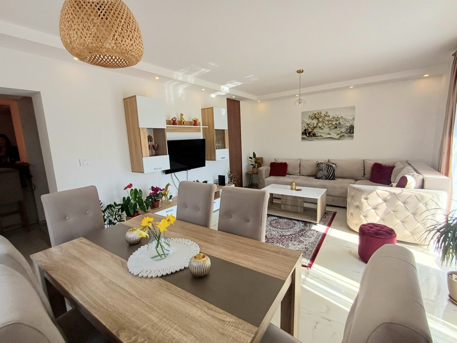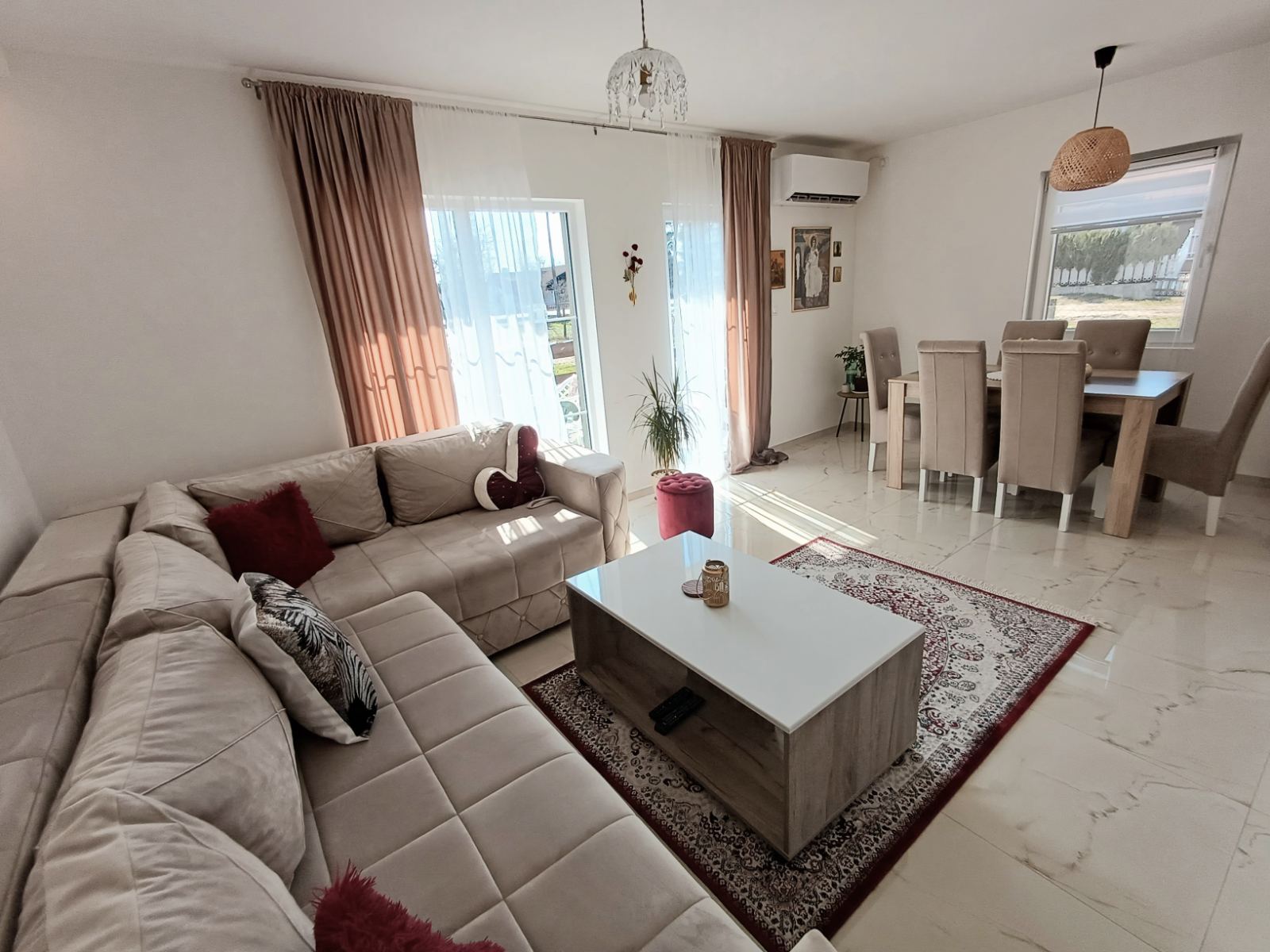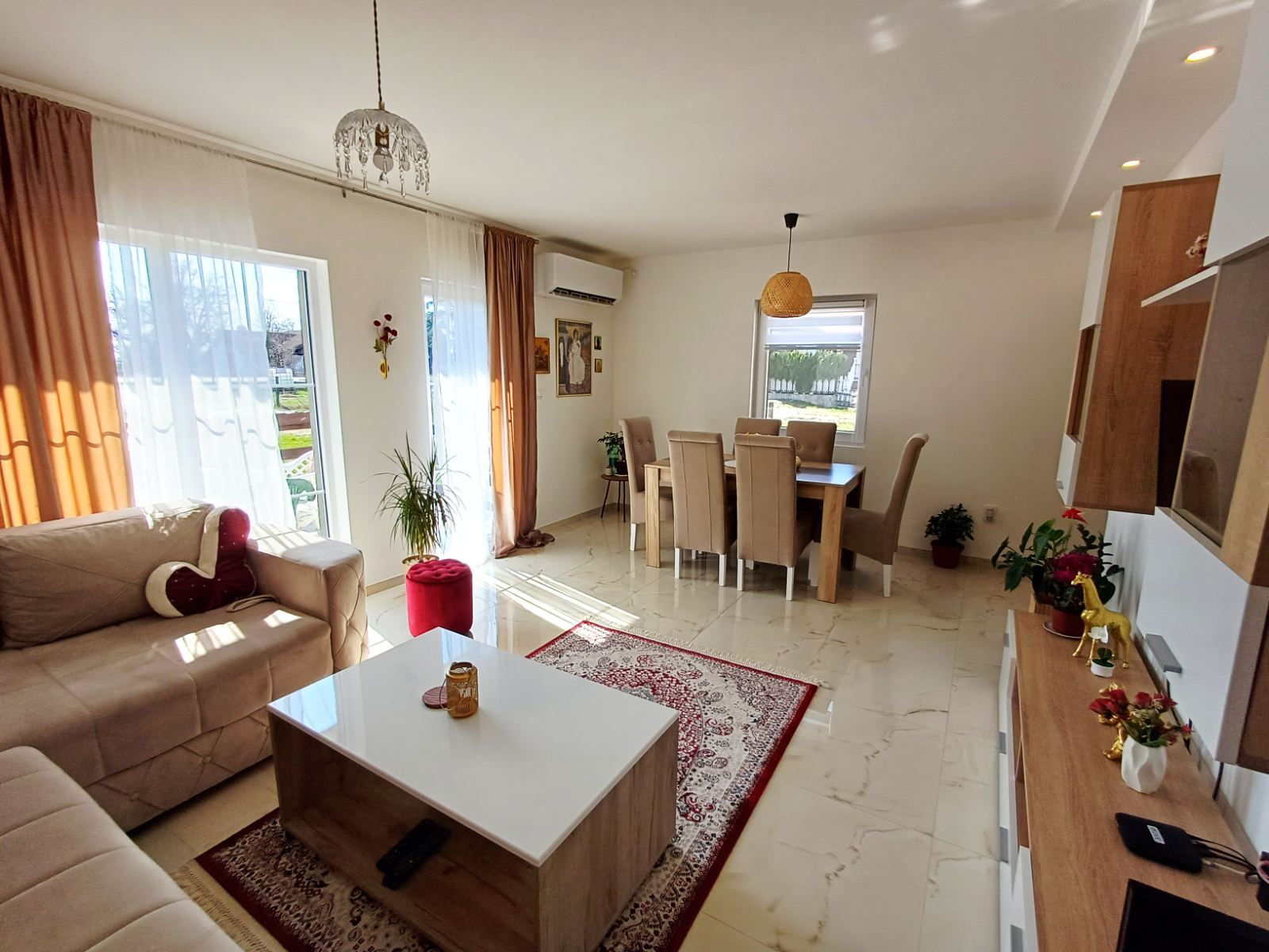 prostrana dnevna soba sa trpezarijom i izlazom na veliku terasu