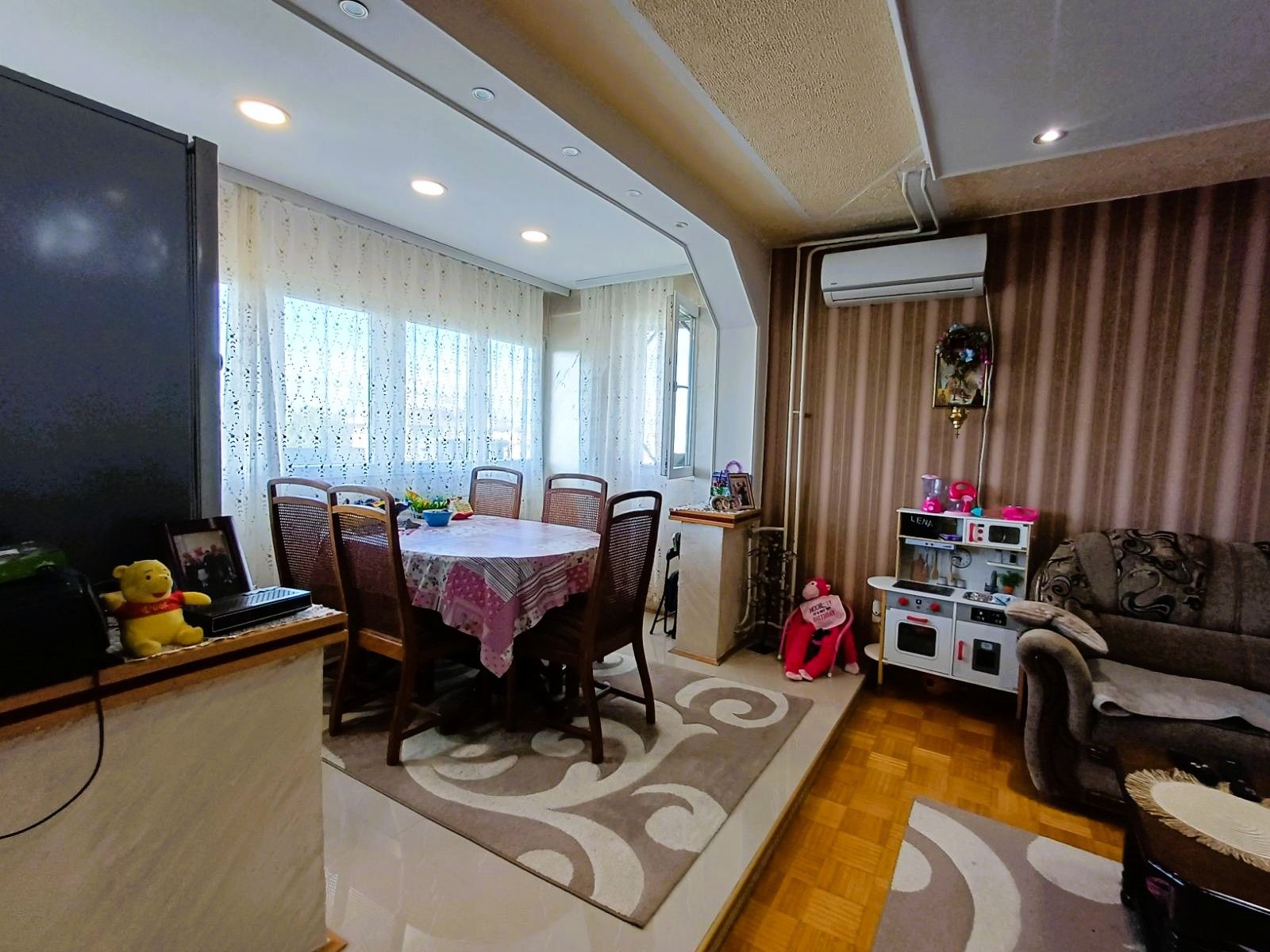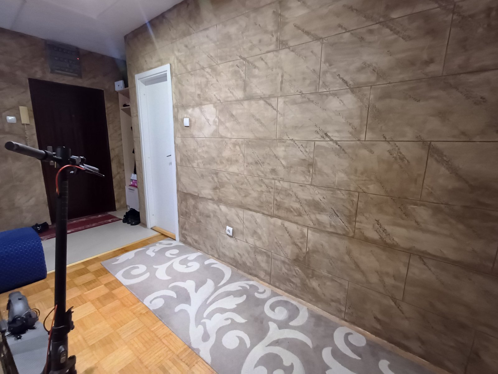 Sastoji se od ulaznog hodnika, tri spavaće sobe, dnevne sobe sa trpearijom, kuhinje, kupatila sa tuš kabinom i toaleta.